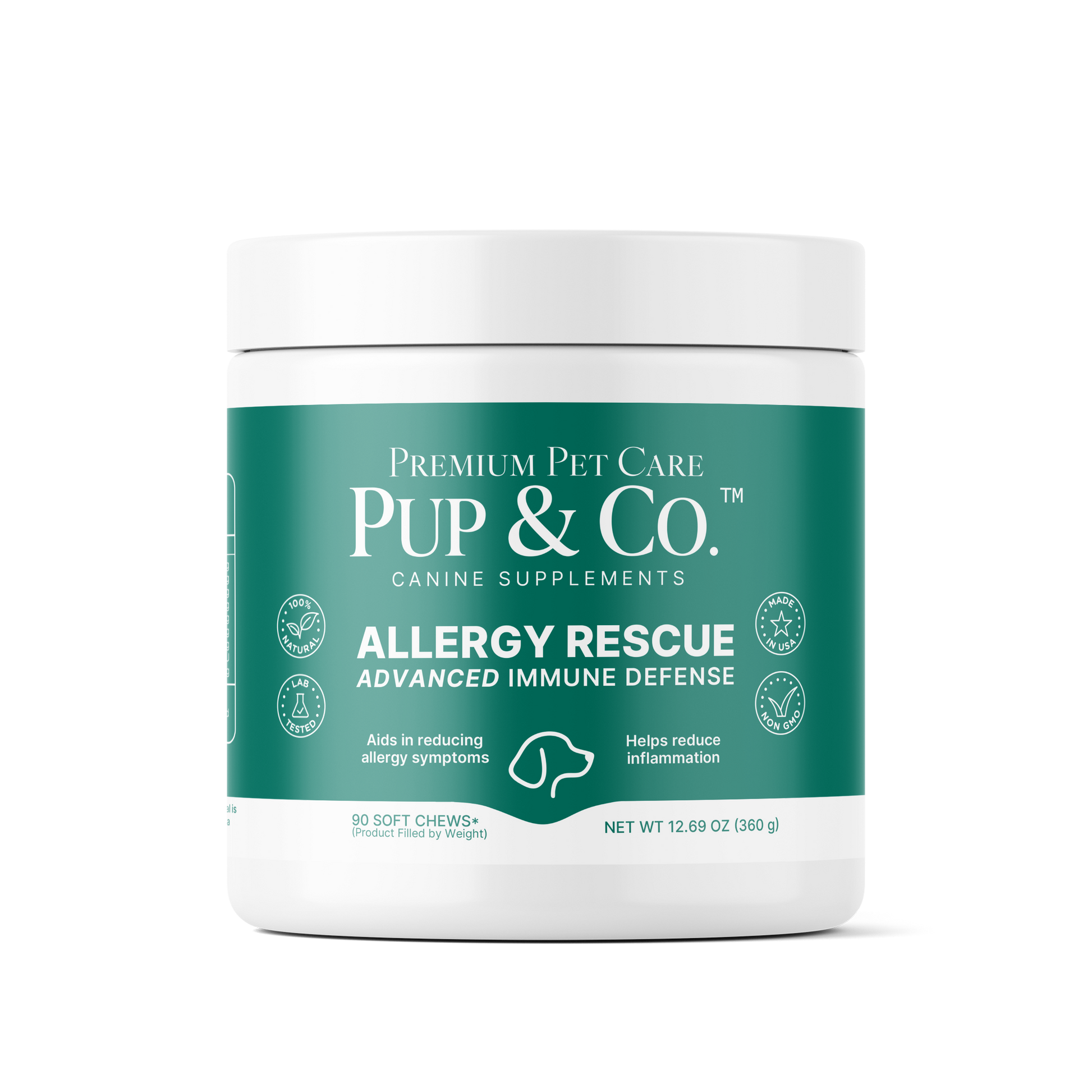 Say goodbye to itching and sneezing with Allergy Rescue. Designed to support seasonal allergy relief and immune health, this formula features natural ingredients like Colostrum, Quercetin, and Nettle Leaf to help your pup feel their best—no matter the season.